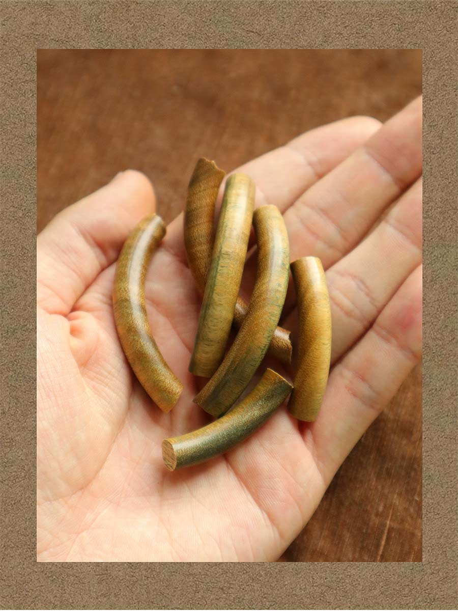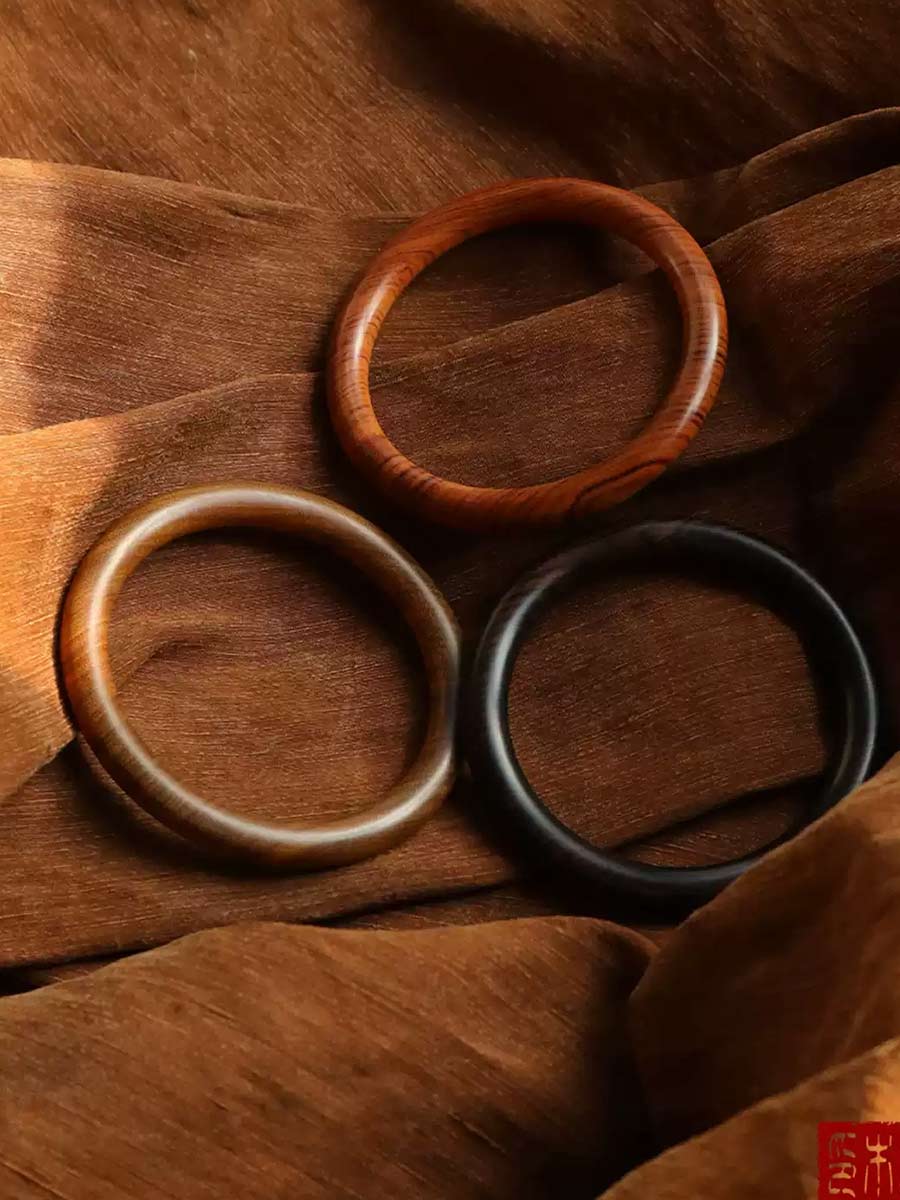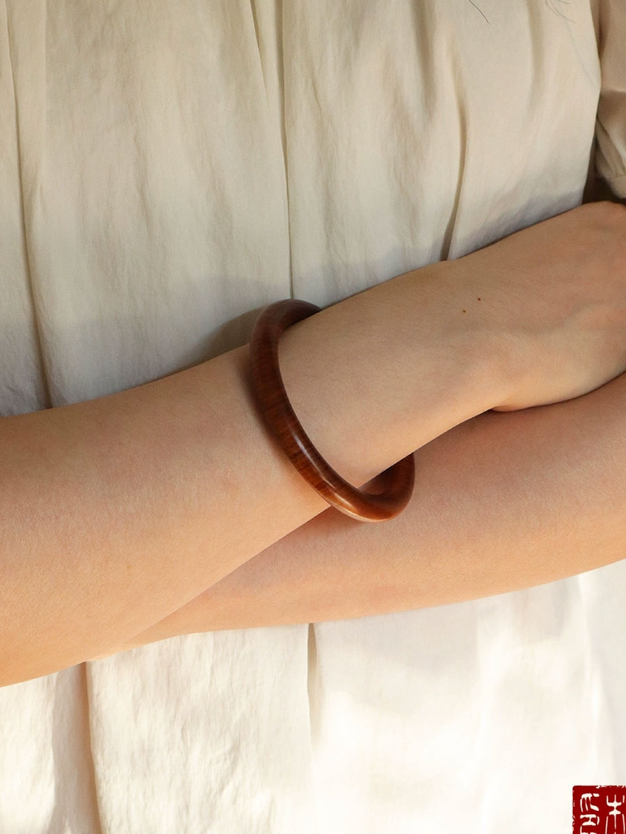 Celebrate the organic beauty of nature with the 木眠「春自献」 (Mu Mian - Spring Offering) collection, featuring solid, hand-polished natural wood bangles. Each piece is crafted through an eight-step refinement process, distinguishing these artisanal bangles from mass-produced wood jewelry. Made from genuine solid heartwood, these bangles are lightweight and comfortable for all-day wear. Because they are made from natural wood, every bangle features unique grain patterns and color variations, ensuring your accessory is one-of-a-kind. These pieces are designed to age beautifully, with materials like green sandalwood naturally changing color over time.