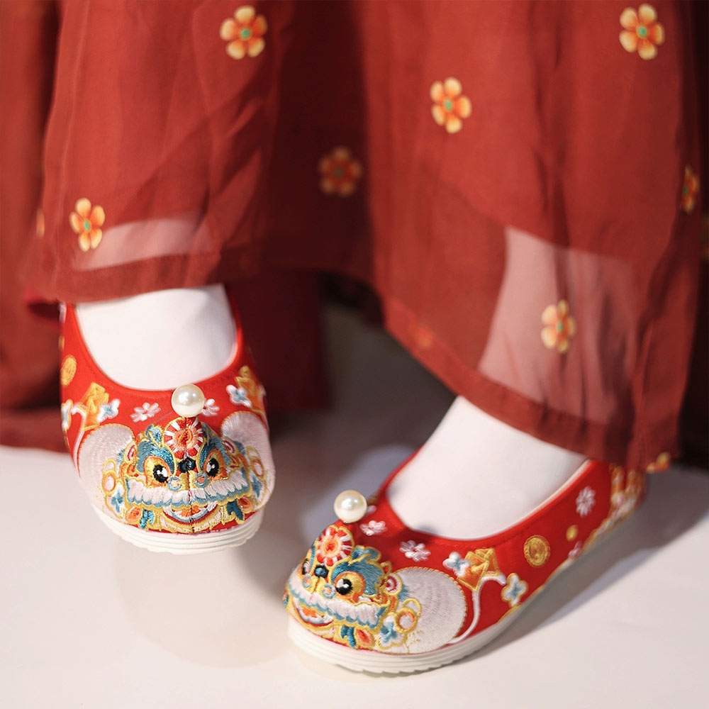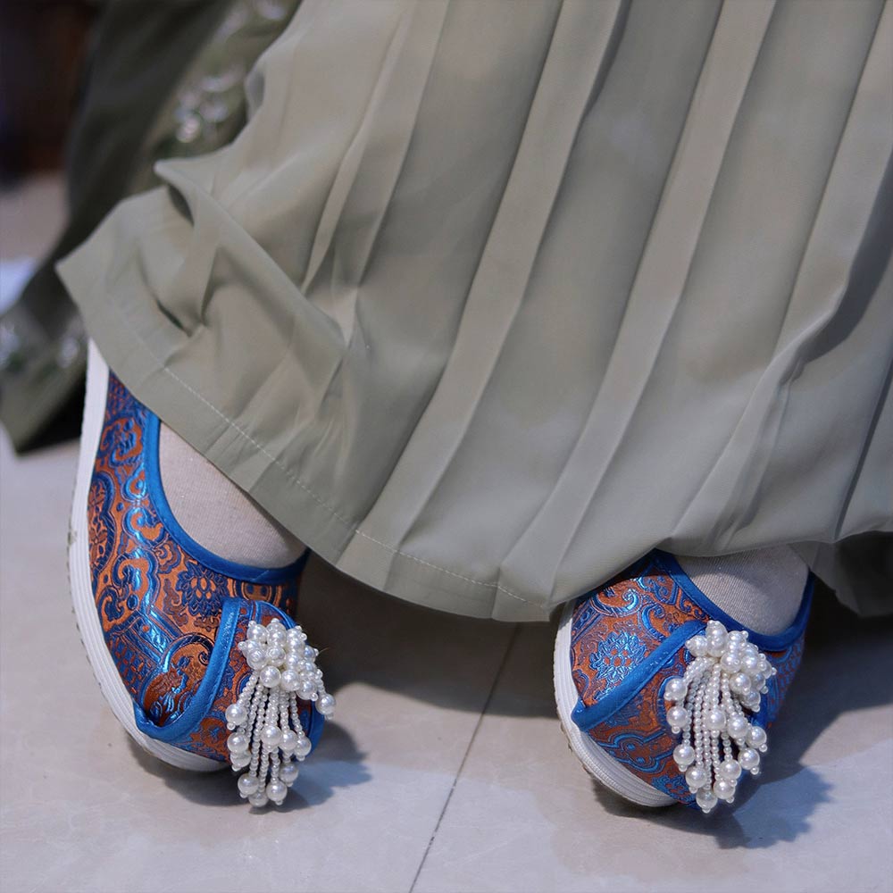 Exuding timeless elegance, the 若可 (Ruo Ke - As Desired) series by Jiangnan Zhu Ji is a exquisite collection of traditional Hanfu footwear crafted from premium brocade fabric. These shoes feature a classic "Yuntou" (cloud-shaped) toe silhouette adorned with meticulously hand-crafted bead flowers, making them a perfect choice for Chinese wedding attire or as a sophisticated accompaniment to refined Hanfu ensembles. The collection offers two practical options: a light-weight Flat Sole for graceful movement during runway walks, and a 4cm Hidden Heel version designed to subtly enhance your height and optimize your outfit proportions. Available in auspicious Red, pure White, and serene Blue, these shoes are a beautiful testament to oriental craftsmanship.