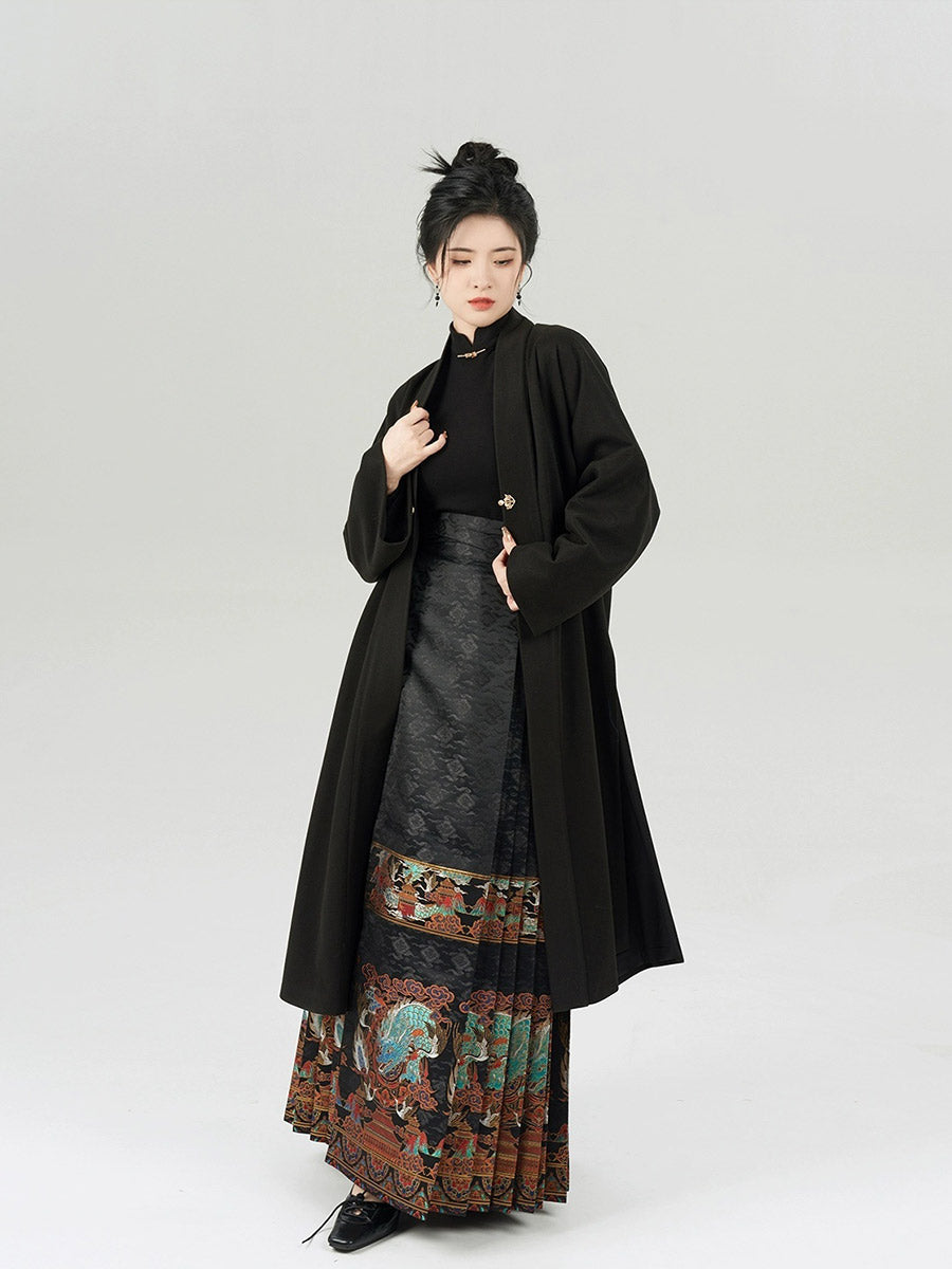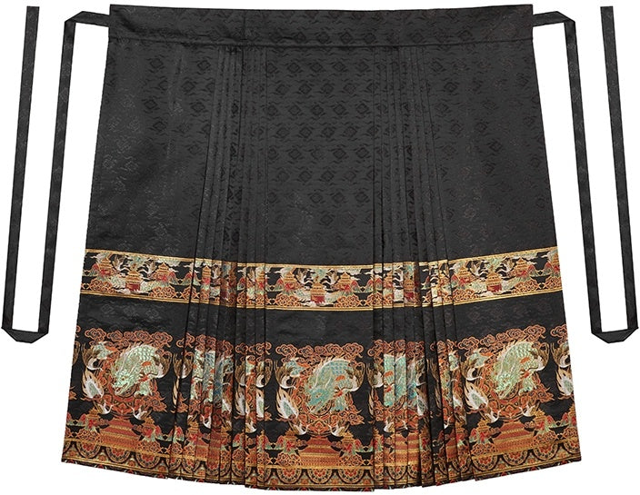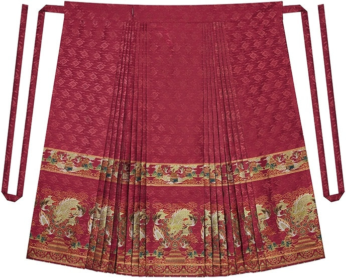 Presenting the "Deng Yun Long (登云龙 - Ascending Cloud Dragon)" collection, a design that evokes the awe of "a dragon's gaze upon ascending a mountain." The inspiration for this dual-color Mamian Skirt comes from the Chinese intangible cultural heritage of lacquerware, traditionally featuring striking vermilion and black hues.