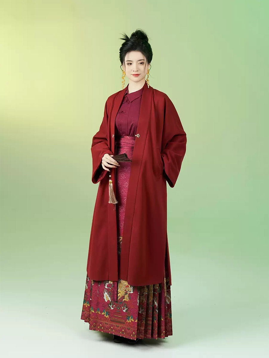[Ascending Cloud Dragon] 登云龙 Original Ming Style Hanfu Set - Neo-Chinese Red Mamian Skirt Wedding Attire with Half Turtleneck Shirt