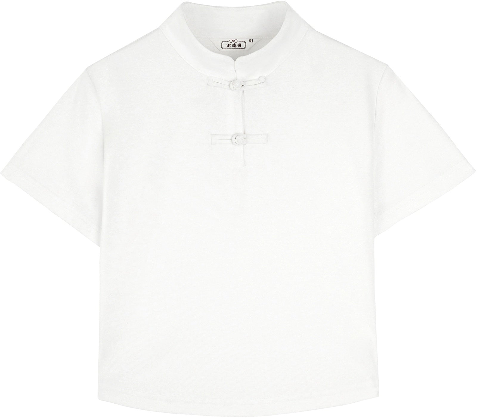 White Stand-Collar Short-Sleeve T-shirt: Water Soft Cotton.