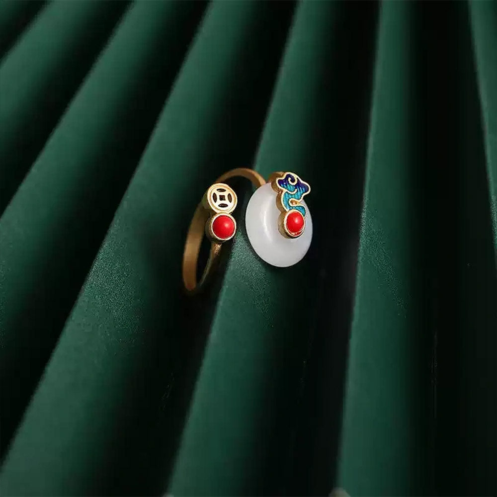 [Auspicious Clouds] 祥云 He Tian Jade Recalculating Fortune Ring - Niche Retro Chinese Style S925 Sterling Silver Jewelry