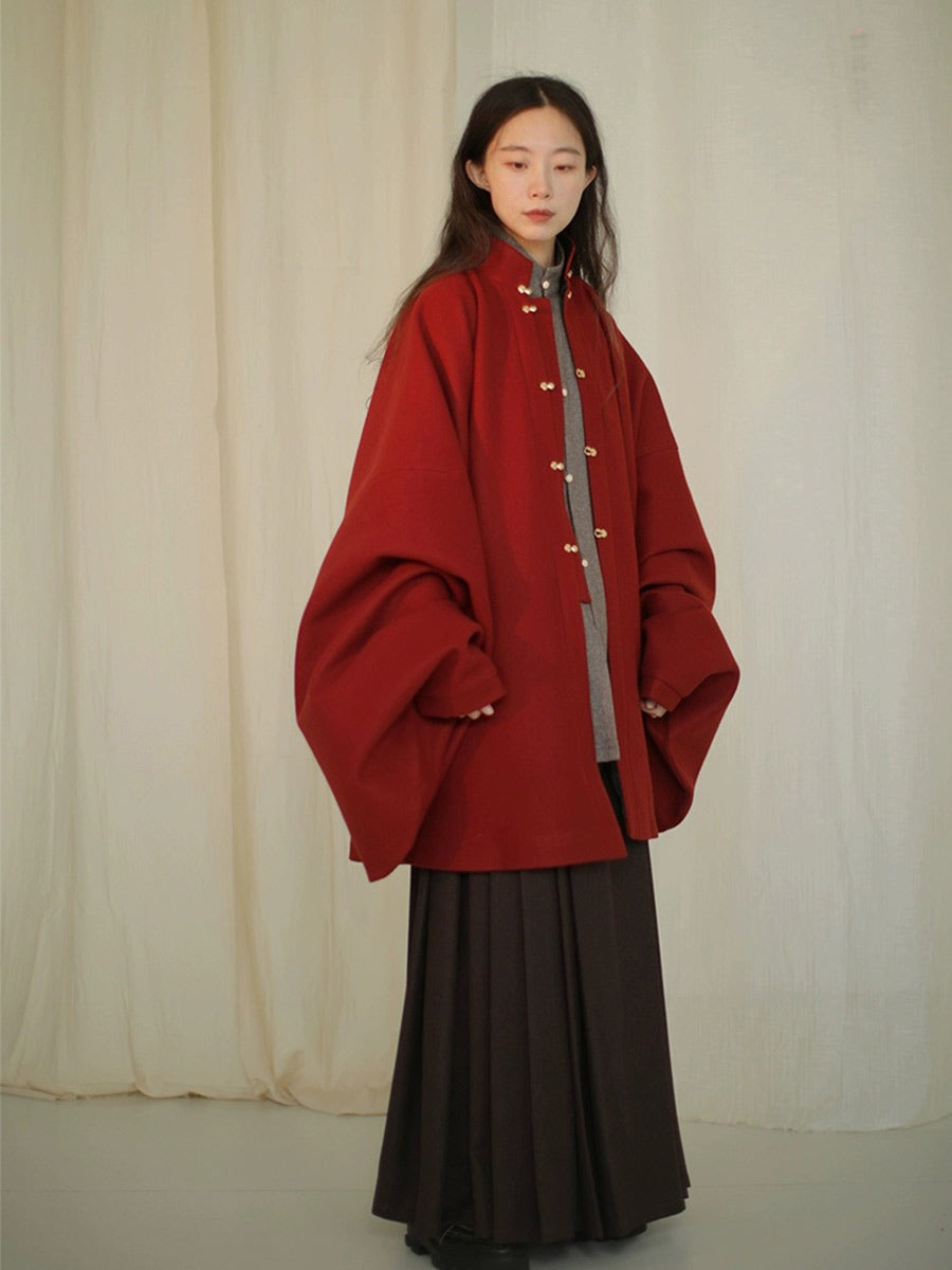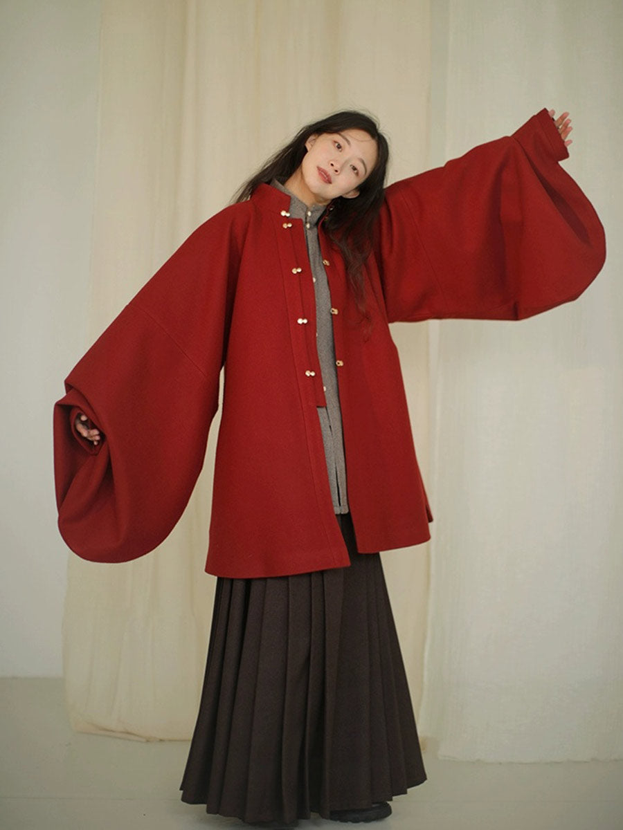Red Woolen Pipa Sleeve Short Robe