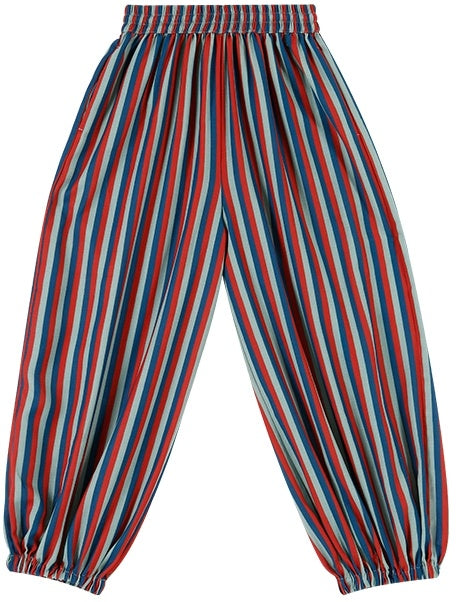 Pairing perfectly with the flowing robes are the exquisite skirts: the geometric Sumeru Screen Azure Blue Paneled Skirt (苏幕遮苍蓝裥色裙 - sū mù zhē cāng lán jiǎn sè qún), a 12-gore paneled design, and the solid-colored Kalana Pleat-less Eight-Gore Skirt (迦蓝无褶八破裙 - jiā lán wú zhě bā pò qún). The ensemble is completed with the voluminous, striped **Qīngcāng Gathered Cuff Trousers (擎苍收脚裤 - qíng cāng shōu jiǎo kù)**.