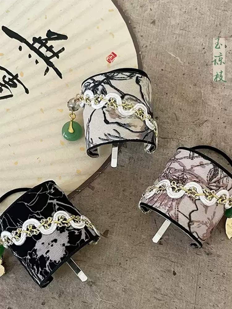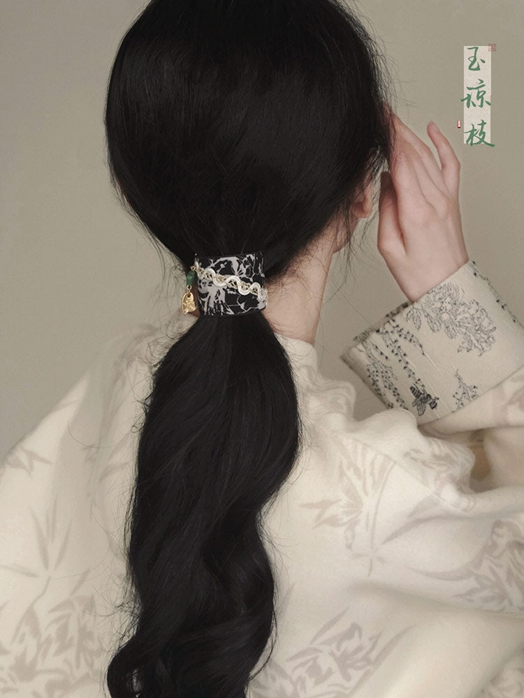This series of ponytail holders combines delicate embroidery with the auspicious Ping'an Kou (平安扣, safety clasp) motif in a New Chinese style. Designed for the back of the head (后脑勺), these hair accessories secure ponytails or braided hairstyles, adding an elegant, flowing element with subtle tassel accents.
