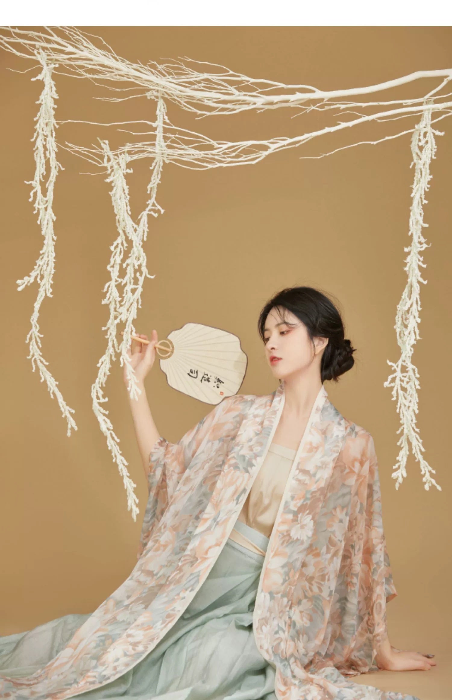 The Song-style Changgan Temple Long Shirt (宋制长干寺长衫 - sòng zhì cháng gàn sì cháng shān) offers a flowing, ethereal silhouette. Its design is both historically inspired and refreshingly modern, making it a versatile piece for any wardrobe.