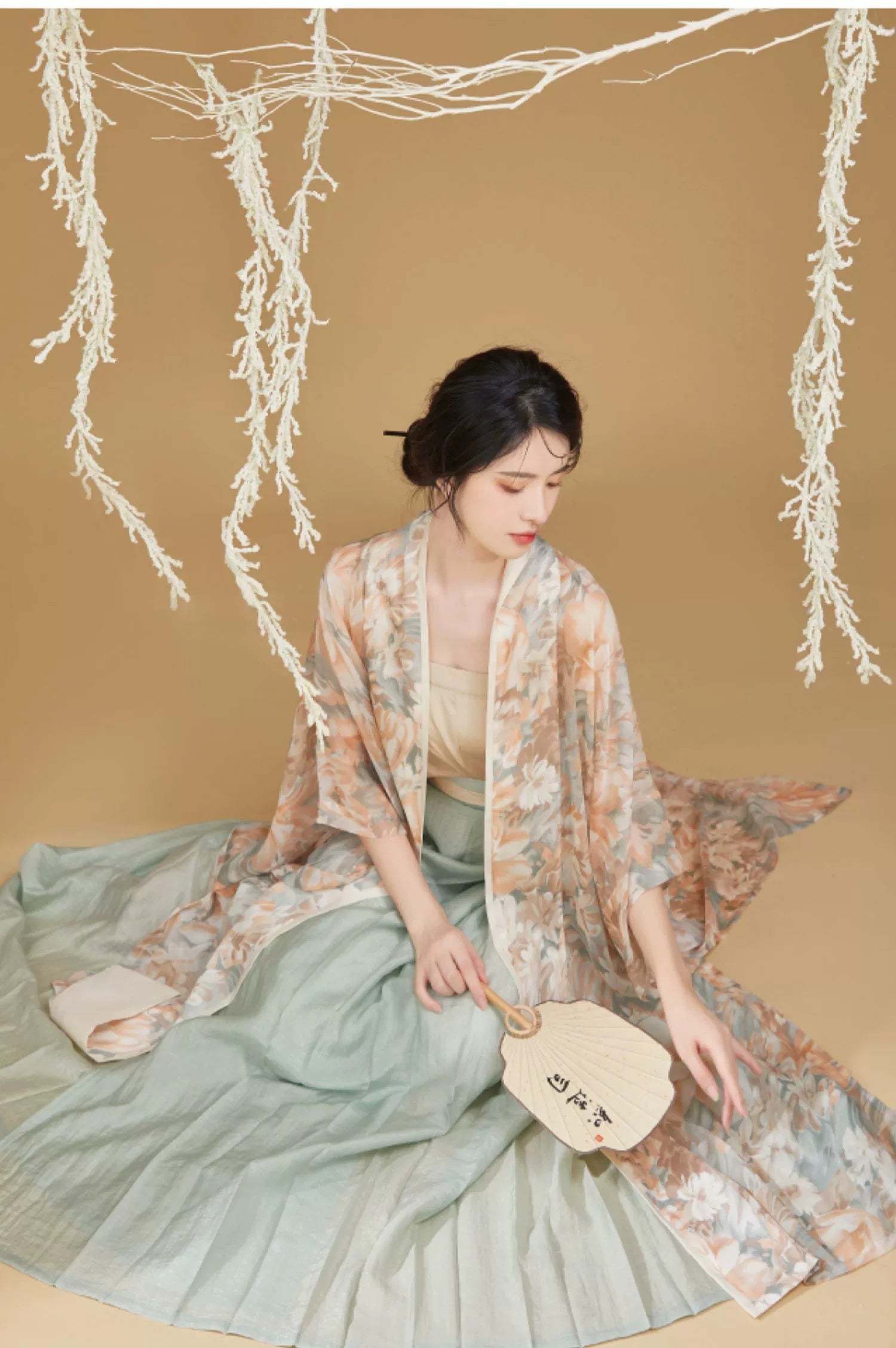 Inspired by the gentle grace of a classic poem, the "Jiao Liu (娇柳 - Tender Willow)" collection captures the essence of a serene spring day. It evokes the feeling of a light breeze that is not cold, and a soft rain that barely dampens the clothes—a perfect portrait of subtle, poetic beauty. This Song Dynasty style ensemble is designed for elegance and comfort.