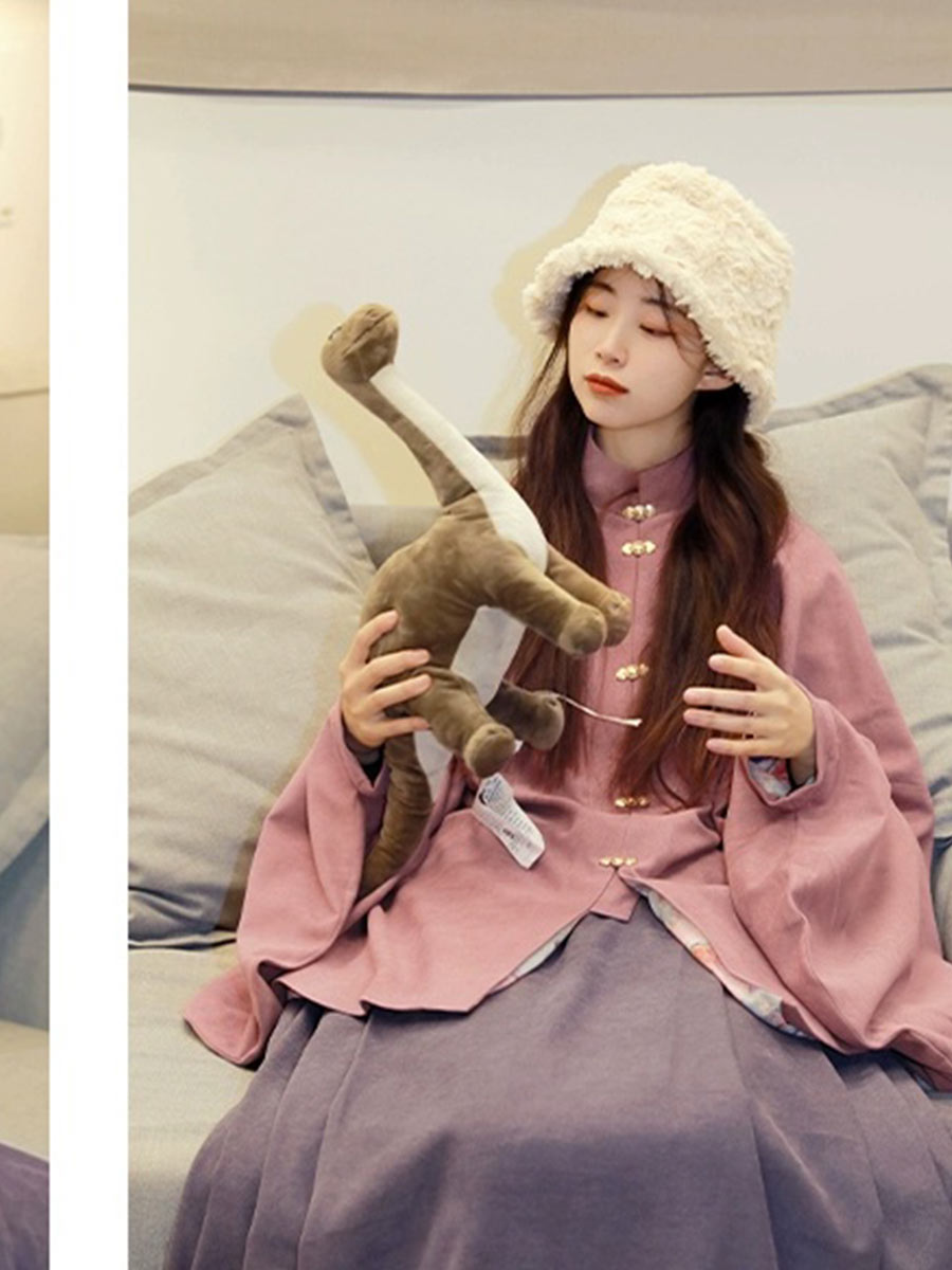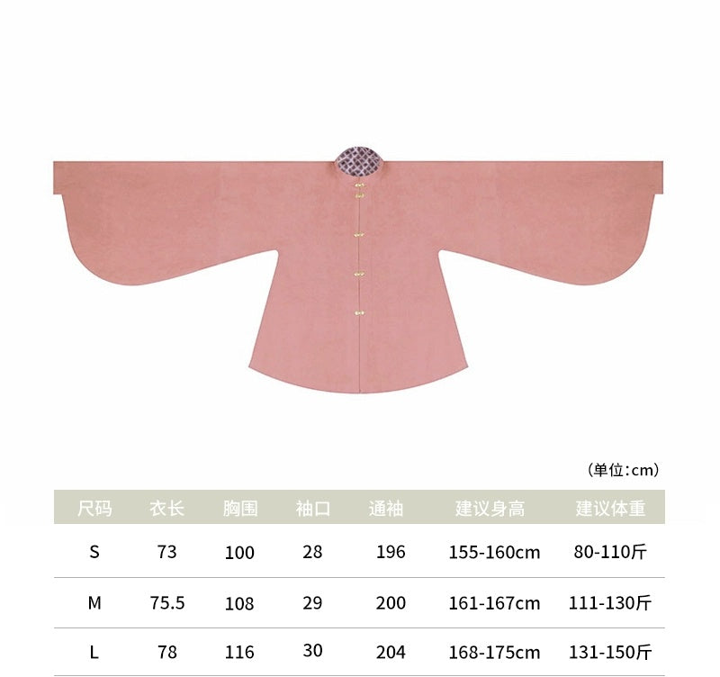 Both the Peng 3.0 Bow Sleeve Jacket (鹏3.0弓袋袖 - péng 3.0 gōng dài xiù) and the Peng 3.0 Pipa Sleeve Jacket (鹏3.0琵琶袖 - péng 3.0 pí pá xiù) are based on the Ming Dynasty standing collar (立领) short jacket style (对襟短袄). They feature a warm fine corduroy fabric and are accented with exquisite plated copper buttons (镀铜子母扣) for a touch of elegance. The primary difference lies in the sleeve design, allowing you to choose between the voluminous, rounded Bow Sleeves (弓袋袖) or the elegant, tapered Pipa Sleeves (琵琶袖). Both options feature a moderate thickness and a soft hand feel.