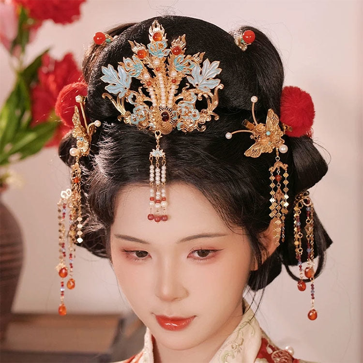 [Phoenix Suitor] 耀如春华 Dazzling Spring Elegance Tang/Ming Style Hair Crown and Accessory Set