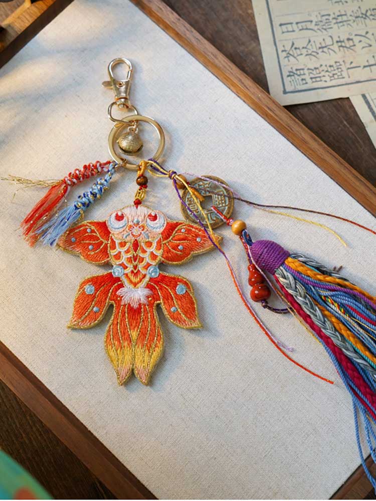 [Red Flying Fish] 云深雾浅 Red Flying Fish Embroidered Goldfish Kite Pendant for Hanfu & Bags