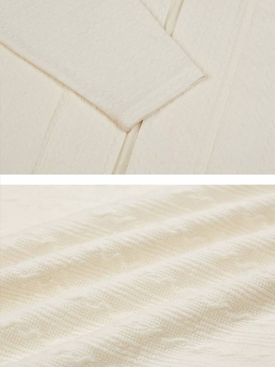 The knit top can be hand-washed gently in cold water. To maintain its shape, avoid wringing and lay flat to dry.