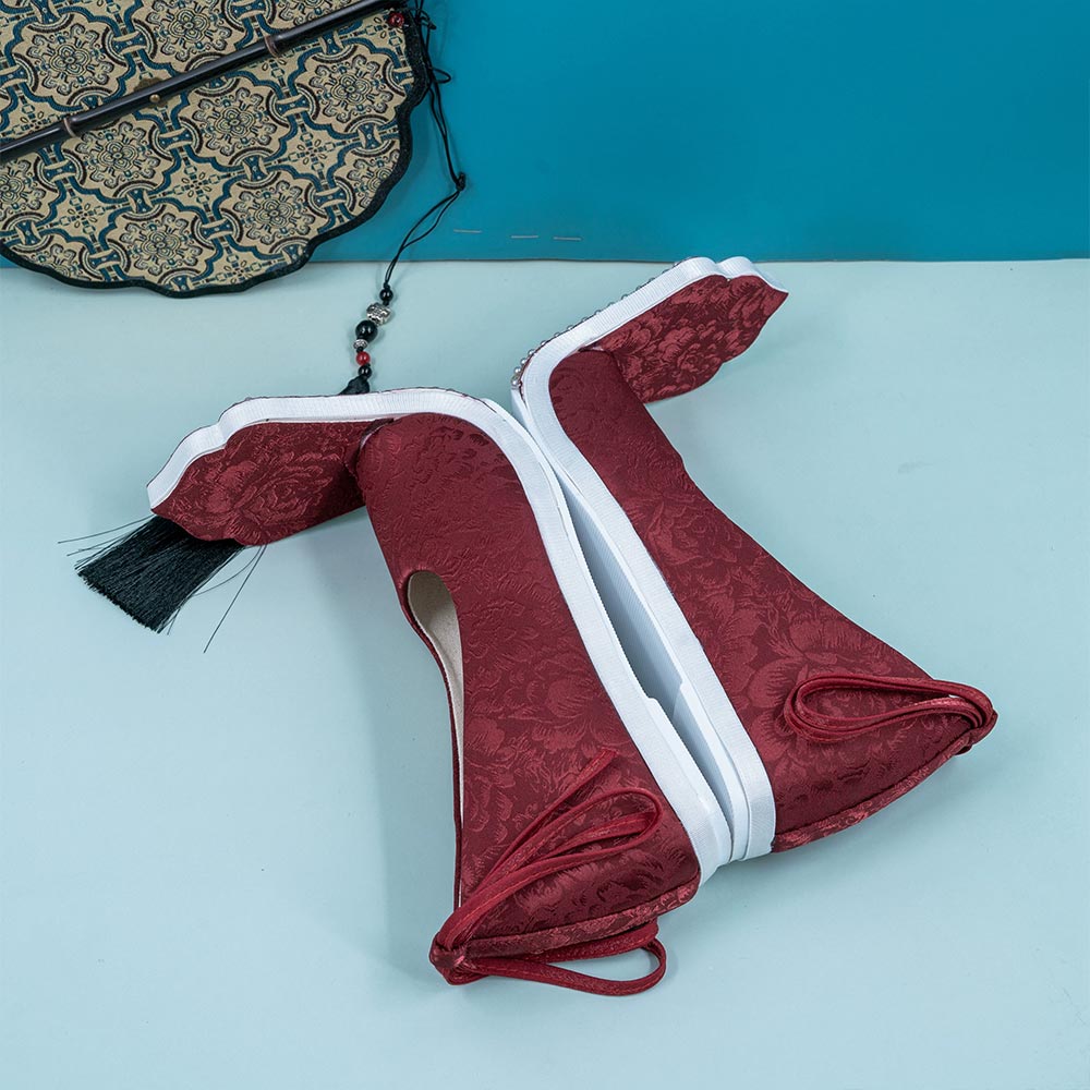 Experience the authentic elegance of traditional Ming and Tang dynasty footwear with the 长卿 (Cháng Qīng) restored "Qiaotou" Hanfu shoes. These shoes feature a customized mercerized fabric that offers a smoother, more premium texture resistant to creases and scratches. Unlike standard market versions, our 长卿 (Cháng Qīng) shoes utilize a specialized mold for the upturned toe to ensure a perfect fit that is soft, breathable, and holds its shape without fatiguing the feet. Available in both a lightweight flat sole for effortless grace and a 4cm hidden heel to elongate the silhouette, these "Dengyun" style shoes are the ultimate accessory for any historical Hanfu ensemble.