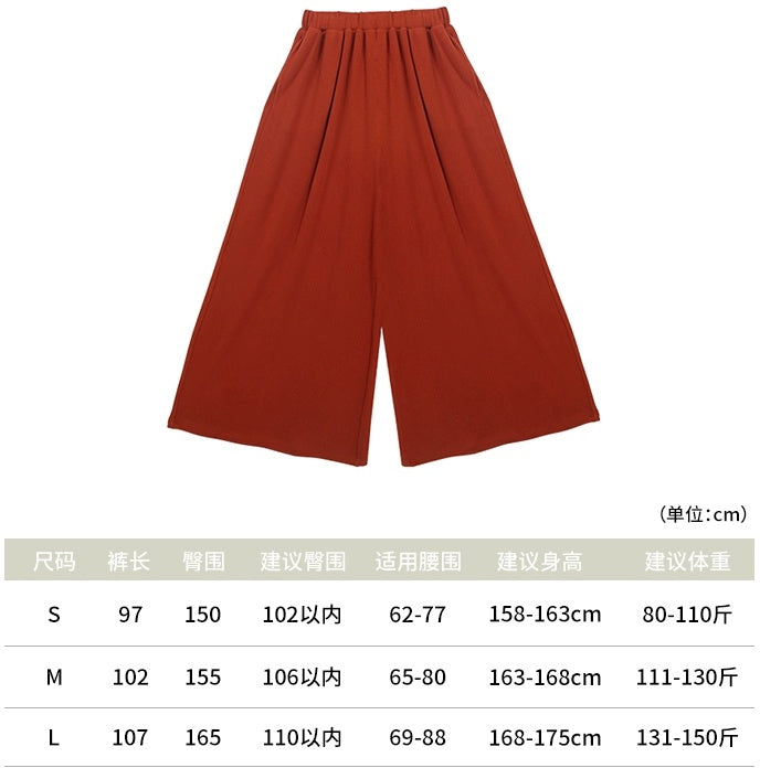 Completing the set are the Little Chestnut Wide Leg Trousers (小栗子阔腿裤 - xiǎo lì zi kuò tuǐ kù). These relaxed, wide-leg trousers feature a soft, micro-elastic blend of rayon and nylon, offering a comfortable, forgiving fit ideal for daily commuting and activities.