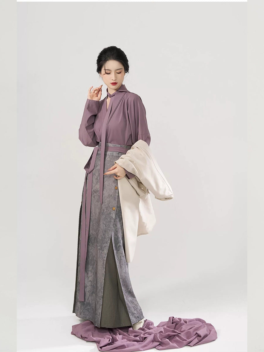 [Urban Diary] 城市日记 Original Song Style Commuter Hanfu Set with Trench Coat Robe & Three-Pleat Skirt