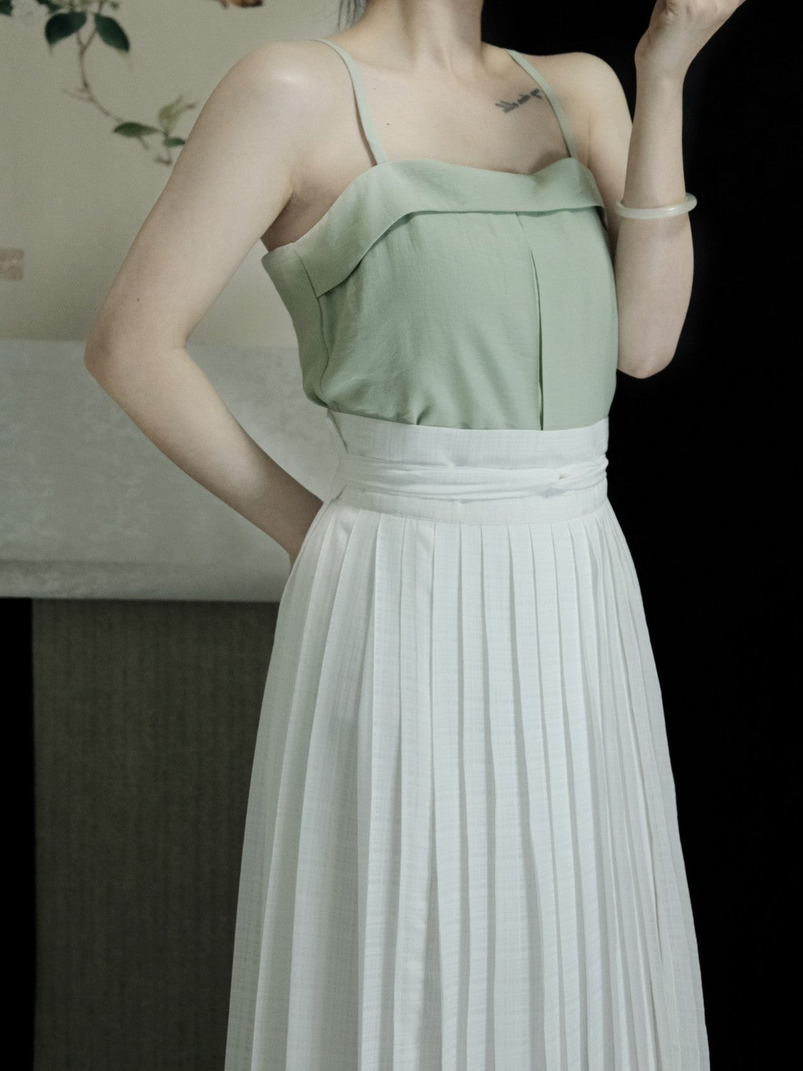 The Song Style Camisole (宋抹吊带 - sòng mǒ diào dài) from our "Lu Ming Xi (鹿鸣溪 - Whispering Brook Deer)" collection is the perfect versatile inner wear piece. Designed for comfort and breathability, it's an essential addition to your Hanfu wardrobe.