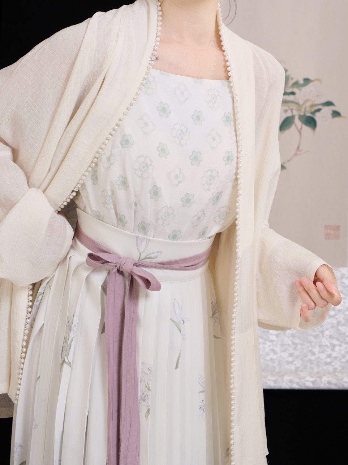 Continuing the beloved design of our best-selling removable pad camisole, we're excited to introduce new Tang-style floral patterns for an even better pairing experience! This Tang Style Camisole (唐风吊带 - táng fēng diào dài) from the "Lu Ming Xi (鹿鸣溪 - Whispering Brook Deer)" collection is perfect as inner wear for your Hanfu ensembles.